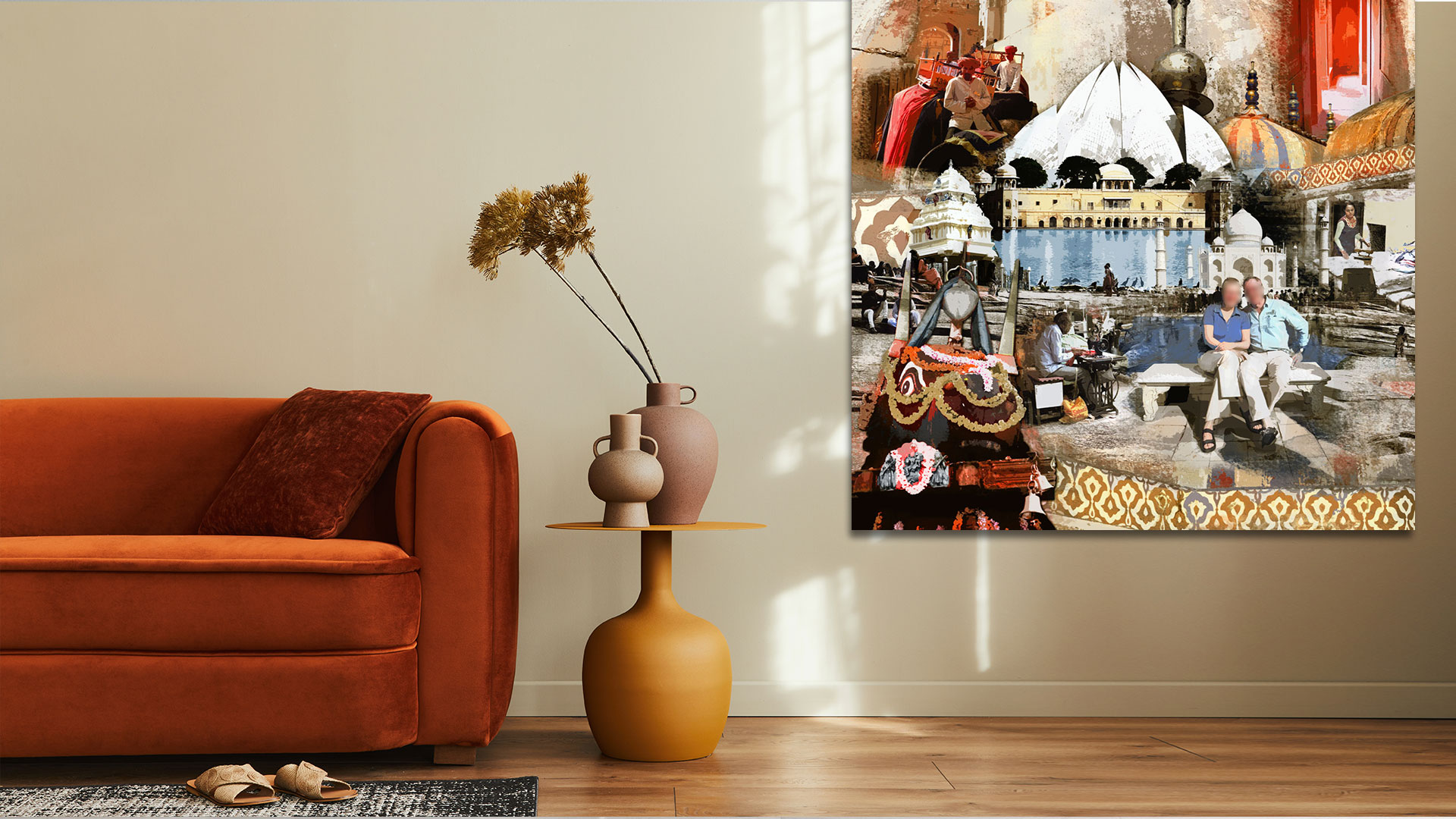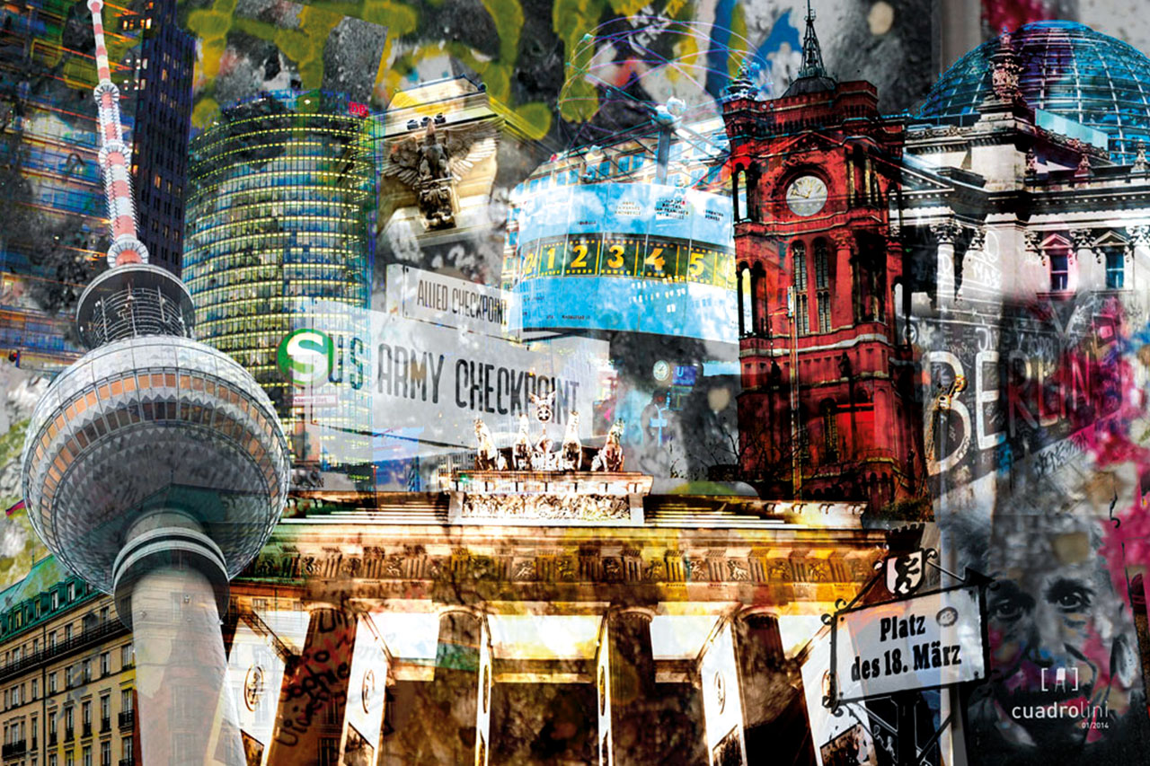 cuadrolini. Sie bestimmen Thema, Inhalt, Farbwelt, Material und Format und erhalten daraus Ihre individuelle Collage.
